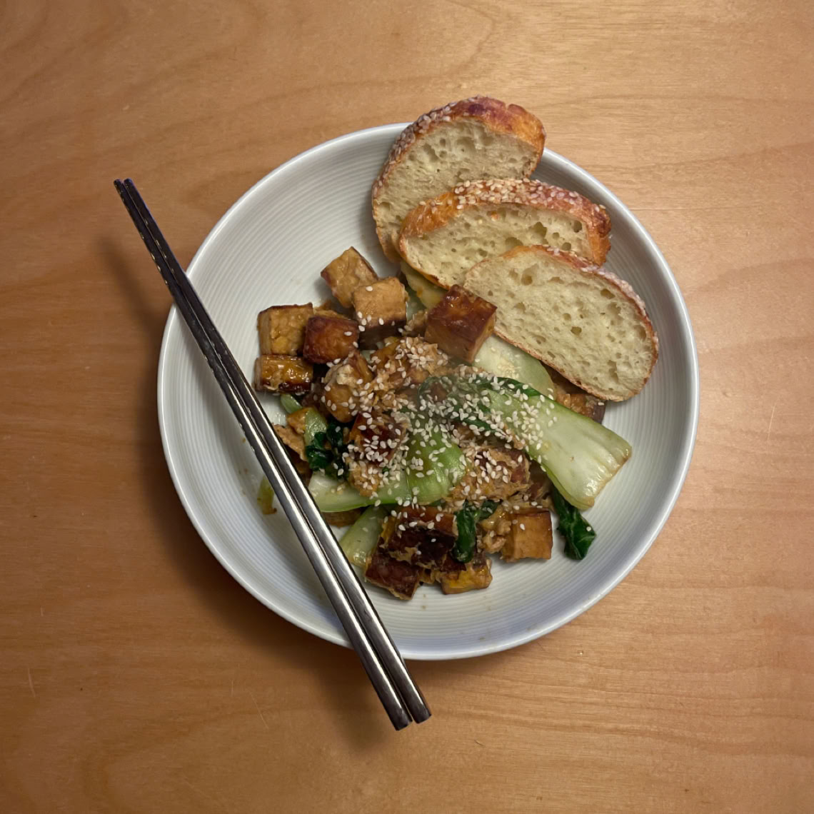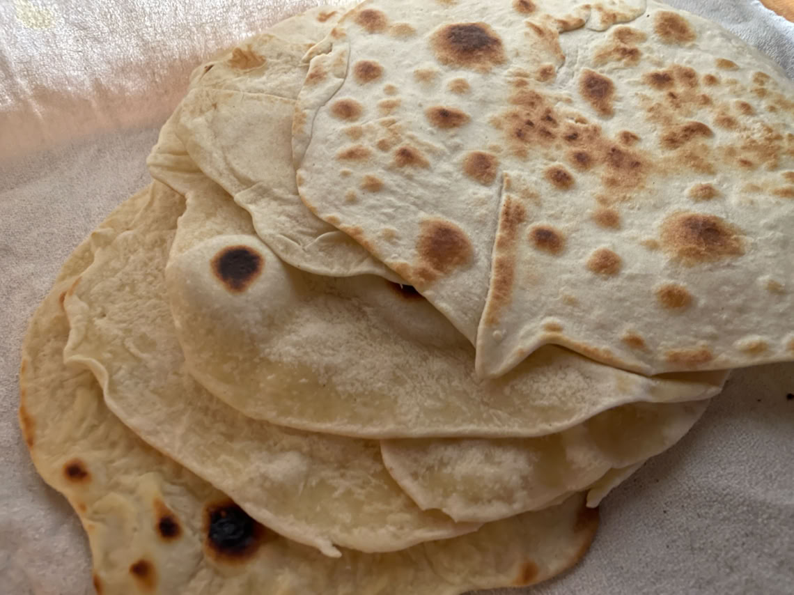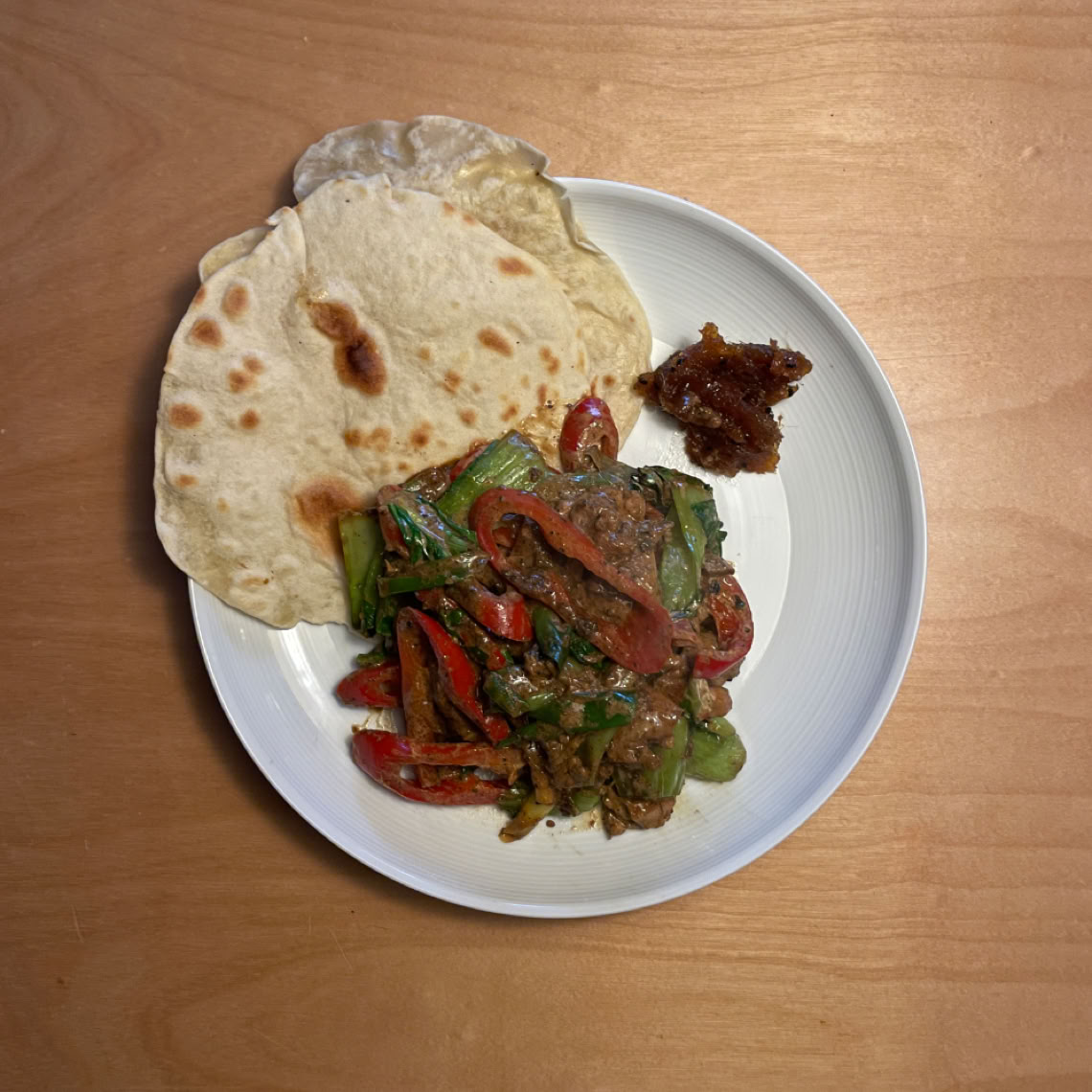 Hühnchen-Handi, Apfel-Zwiebel-Salat und Fladenbrot