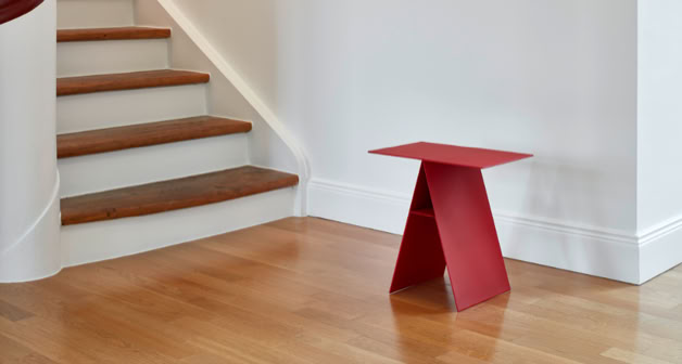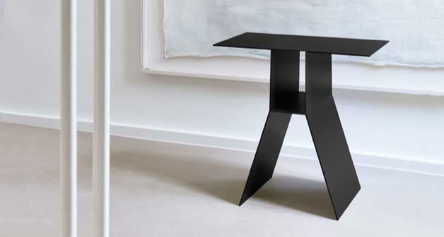 The design of the Kanji side table series was inspired by Japanese characters. Just as calligraphy with a bamboo pen varies in stroke thickness, Kanji changes when viewed in three dimensions: its shape appears linear or flat depending on the angle of view.